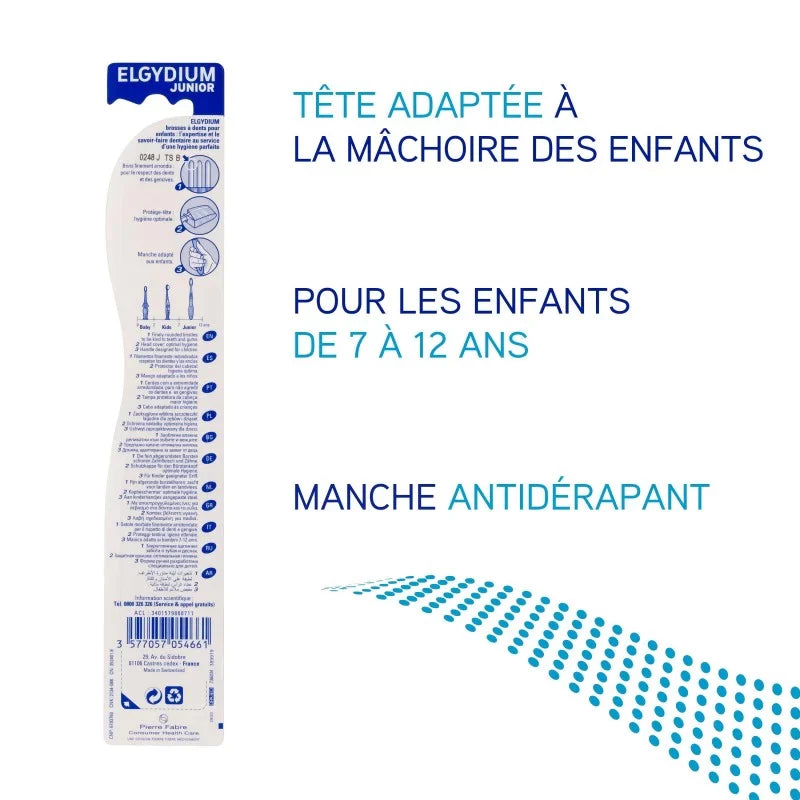 ELGYDIUM Junior 7/12 ans brosse à dents enfant Adaptée à la mâchoire des enfants. Manche antidérapant.