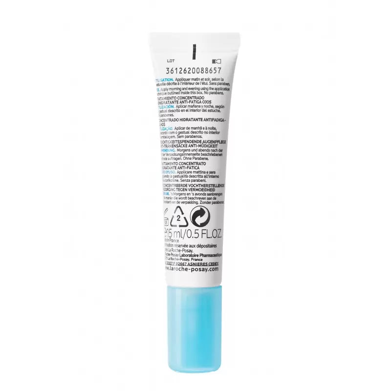 Une efficacité hydratante intensive et ciblée, grâce à l'Acide Hyaluronique Fragmenté, pour lisser les ridules de déshydratation. Une action sur les poches et les paupières gonflées grâce à l'association de Caféine drainante et d'Eau Thermale de La Roche-Posay décongestionnante, optomisée par une gestuelle d'application originale.