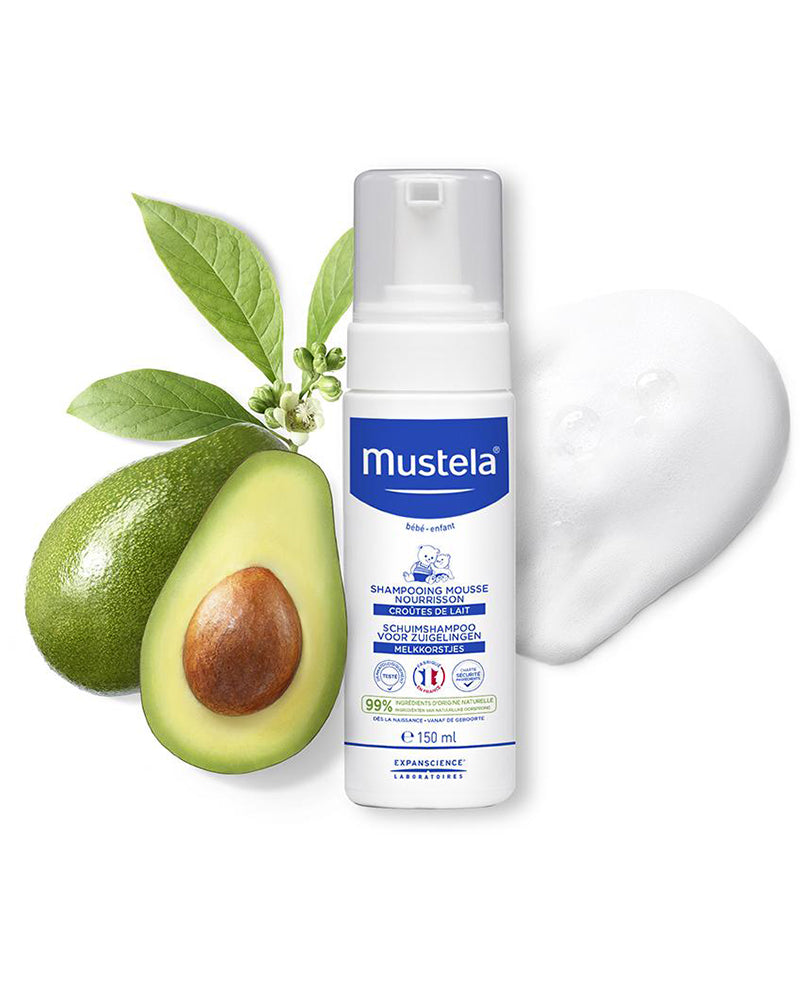 Le Shampoing mousse nourrisson, sans parfum est idéal au quotidien pour nettoyer et aider à éliminer les croûtes de lait.