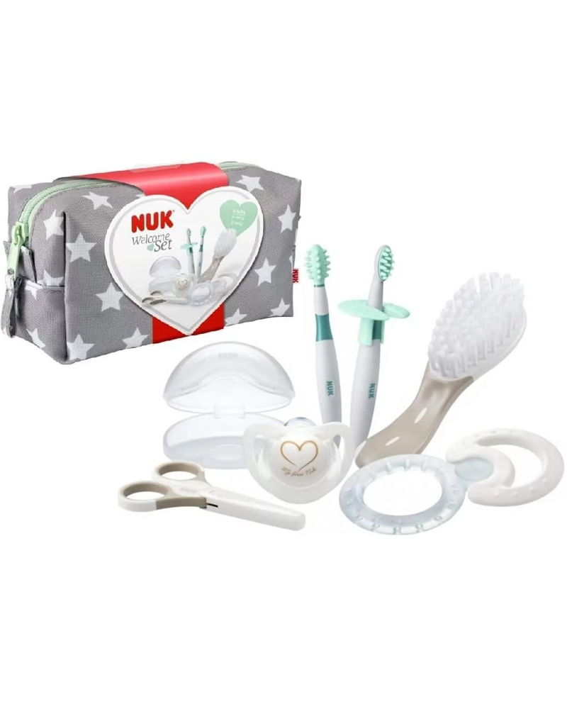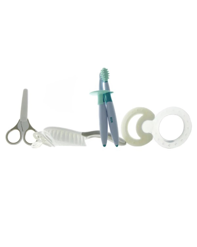 Ce set de soin nouveau-né Nuk contient une grande partie du petit matériel indispensable pour prendre soin de votre bébé.