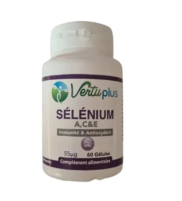 Ce produit est un complément alimentaire à base de sélénium, qui contient des vitamines A, C et E. Il est présenté sous forme de 60 gélules.
